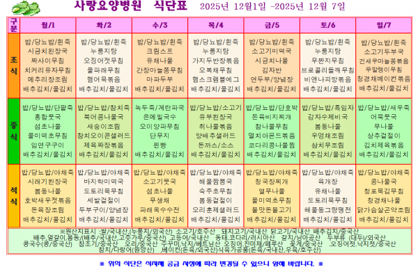 사랑요양병원 12월 첫째주 식단표