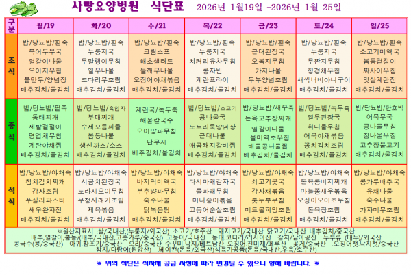 사랑요양병원 1월 셋째주 식단표